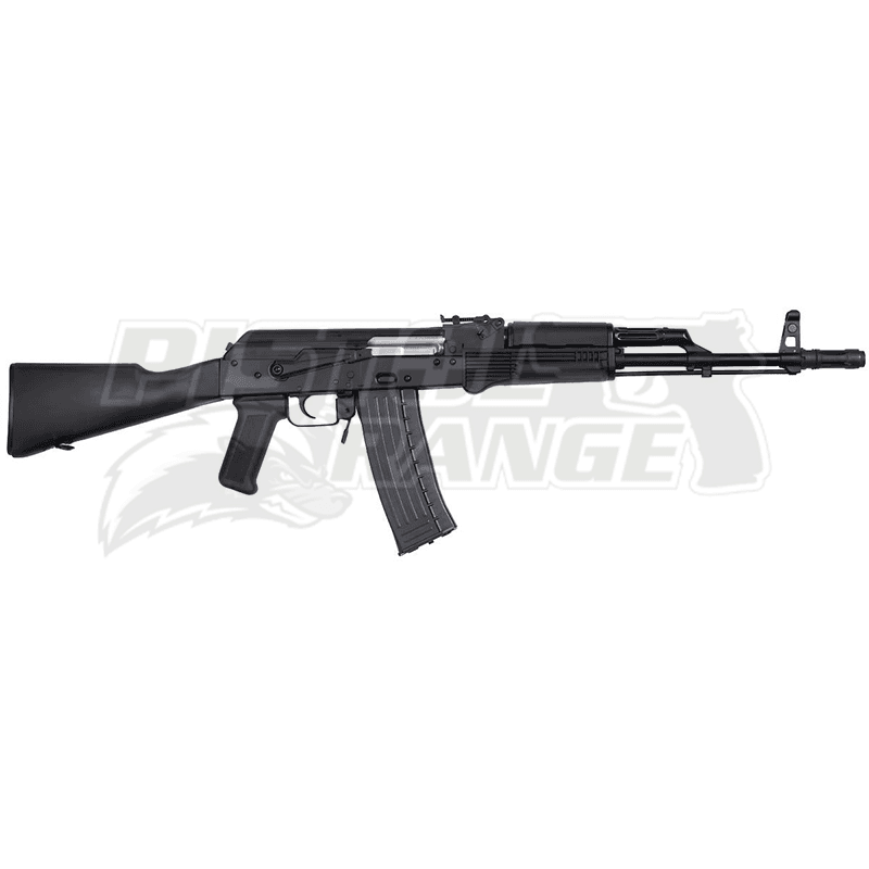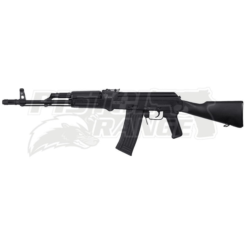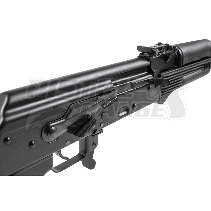 - Wyposażony w kolbę, chwyt pistoletowy, przednie łoże i osłonę rury gazowej wykonane z polimeru