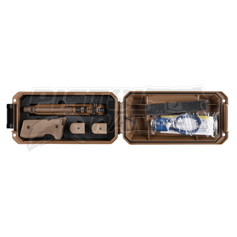 Beretta M9 A4 G FDE kal. 9×19 to wojskowy pistolet samopowtarzalny wyposażony w lufę z gwintem zewnętrznym, powiększony zatrzask magazynka, wymienne okładziny, trytowe przyrządy celownicze oraz trwałe wykończenie cerakote w kolorystyce FDE. Głównym wyróżnikiem wersji A4 jest wykonane fabrycznie podcięcie zamka umożliwiające bezpośrednie osadzenie kolimatora na broni.