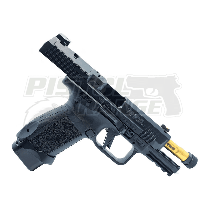 Firma SAI odpowiedzialna jest w tym projekcie za kanelowaną, pokrytą azotkiem, lufę metch-grade, z gwintem pod urządzenie wylotowe na jej końcu (zabezpieczonym radełkowaną nakrętką), celownikami światłowodowymi oraz lejkiem (magwell) na wejściu gniazda magazynka. Canik dołożył od siebie wszystko co najlepsze w pistoletach na rynek cywilny i sportowy (czyli serii TP9) – zamek z wycięciem pod kolimator, ergonomiczny polimerowy szkielet z wkładkami dopasowującymi rozmiar i świetny spust.