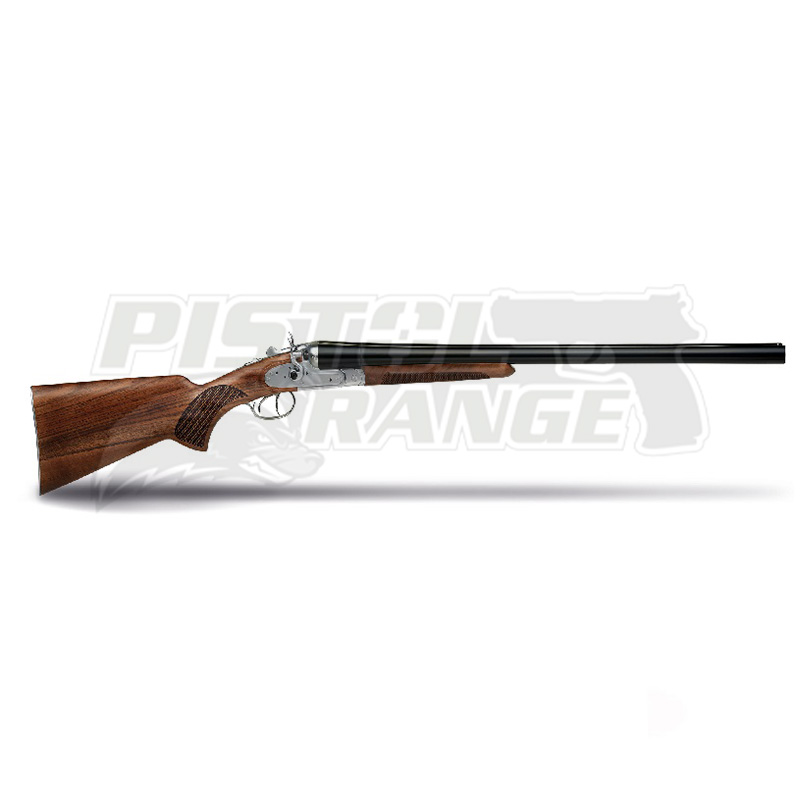 Model HRZ to tradycyjna dubeltówka w układzie luf równoległych (side-by-side), będąca hołdem dla klasycznych konstrukcji myśliwskich. Baskila wykonana została jako monoblok z kutej stali, a lufy powstają z litego materiału stali 4140, co zapewnia niezawodność, wytrzymałość i wysoką odporność na zużycie. Komora nabojowa kalibru 12/76 mm (3″) gwarantuje wszechstronność w zastosowaniach łowieckich i sportowych.